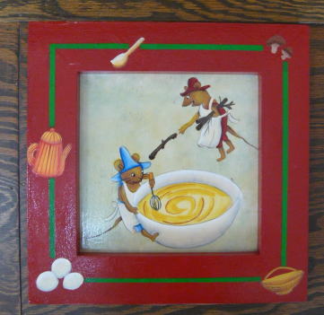 | 「あられと くるみ」 ご自分のお宅のプードルちゃんたちの中から2匹選びました。 トールペイントを始めたばかりの方でもここまで上手に描けました。 |